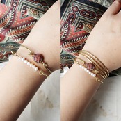 あたたかいゴールド色の真鍮と合わせ、シンプルなバングルにしました。