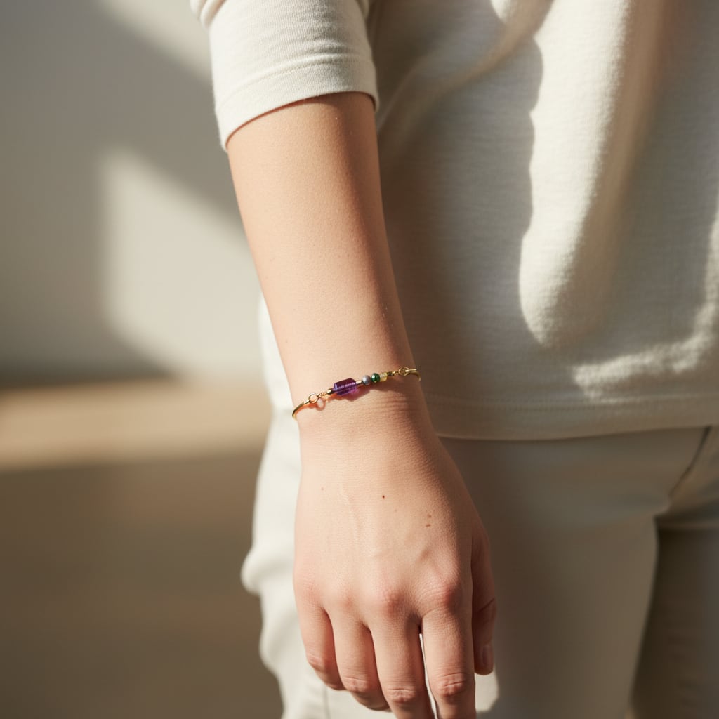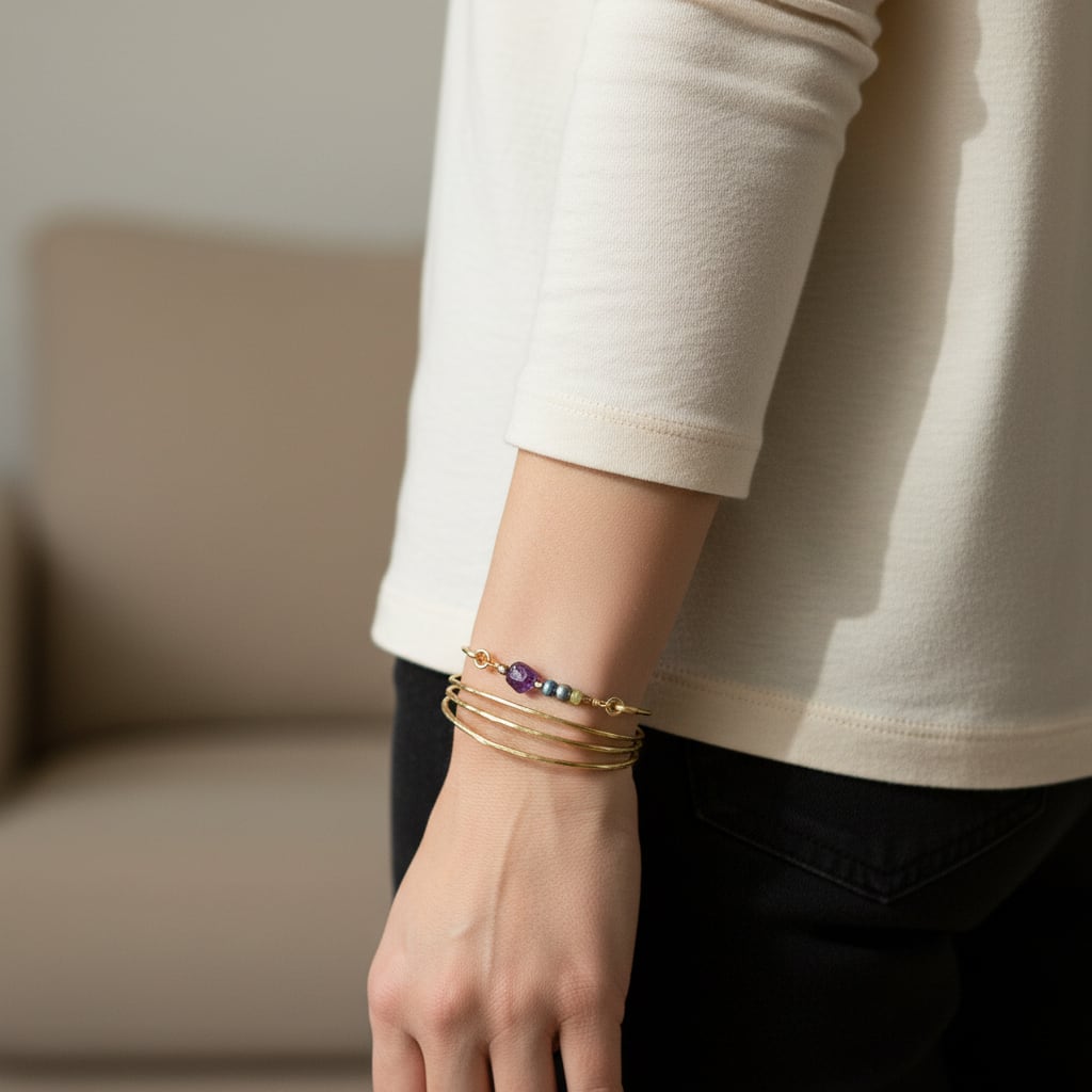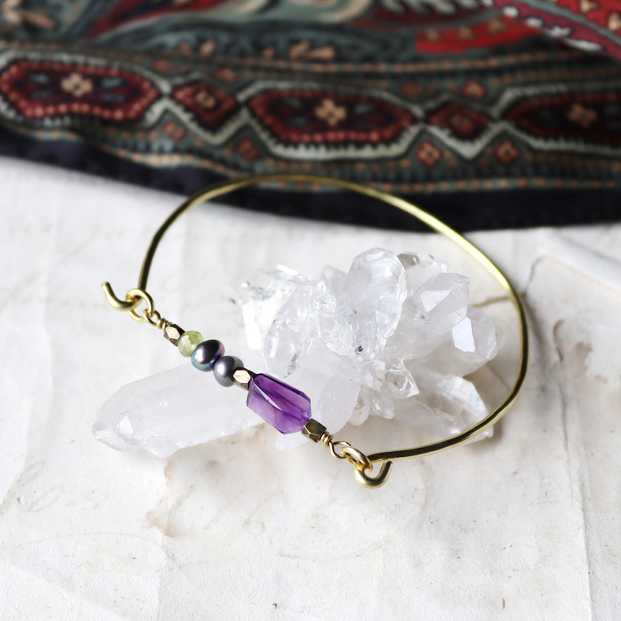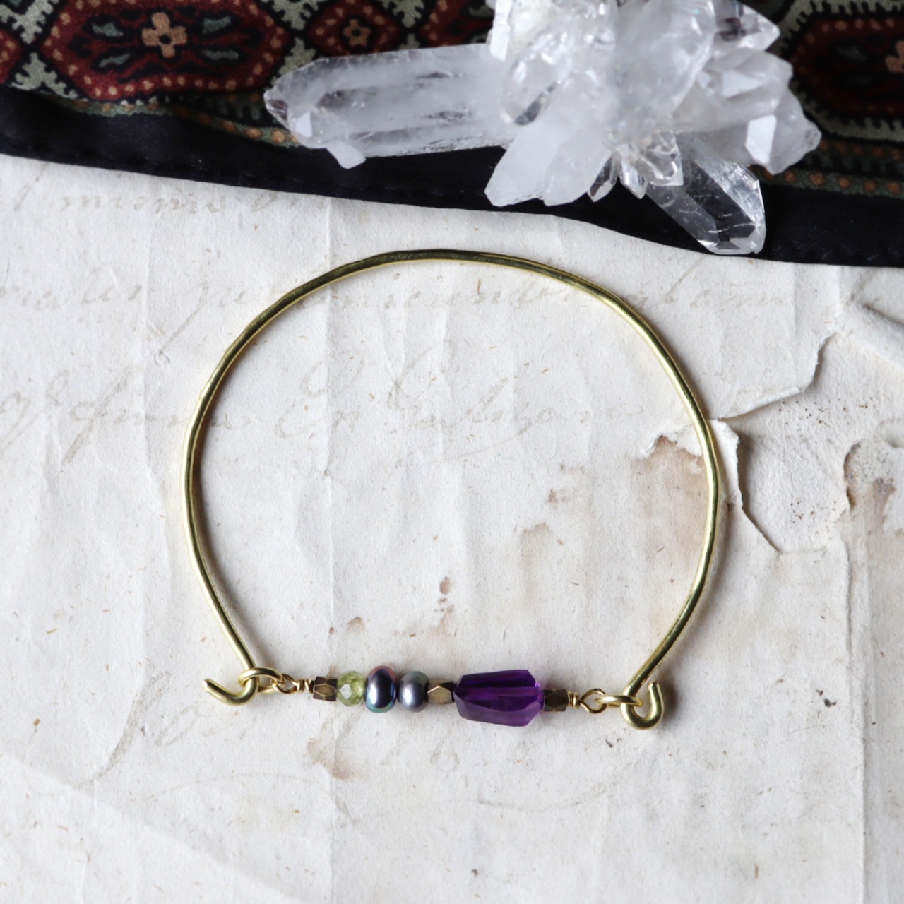 アメジストとグレーパールの真鍮バングル