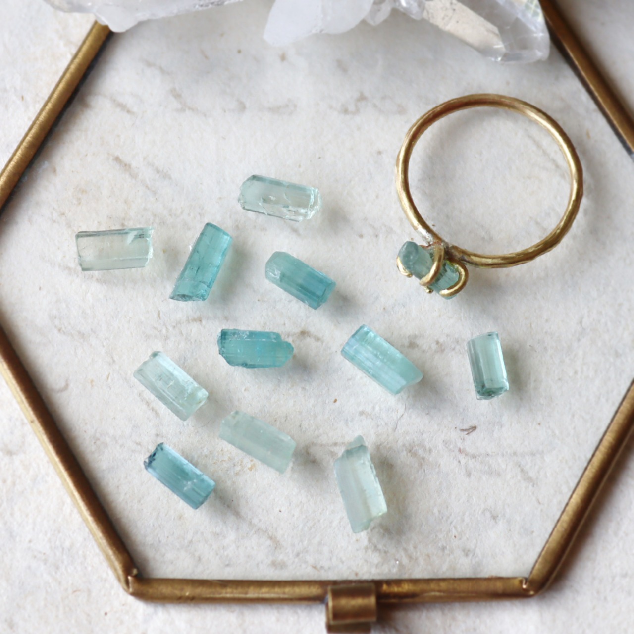 柱状結晶そのままの形、優しいミントブルーが美しい原石のトルマリン。