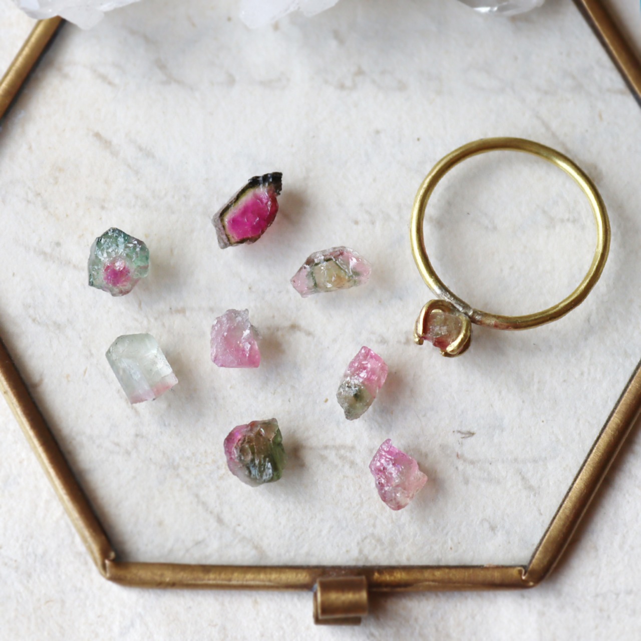 原石ウォーターメロントルマリンの真鍮リング w1249