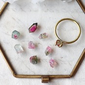 ウォーターメロントルマリンはその名の通り、赤と緑のスイカのような色合いで、きれいなものはとても高価に取引されます。
