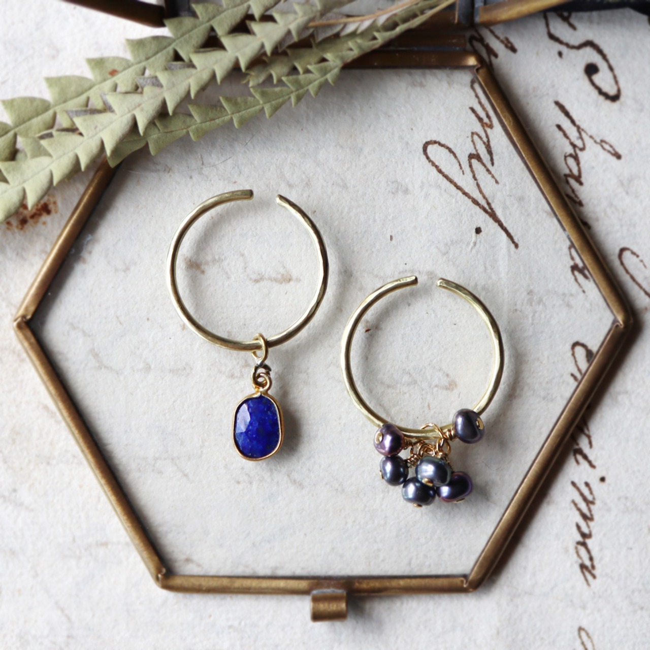 【付替自由】ラピスラズリ・パール・真鍮のぶら下がりイヤーカフ