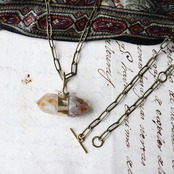 【一点物/虹入】原石シトリンのロングネックレス