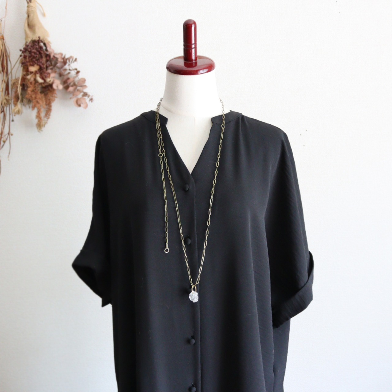 全長130cmの超ロングチェーンと合わせ、様々な使い方ができるネックレスにしました。