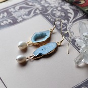 耳元から天然石がしたたって揺れるような印象的なデザイン。