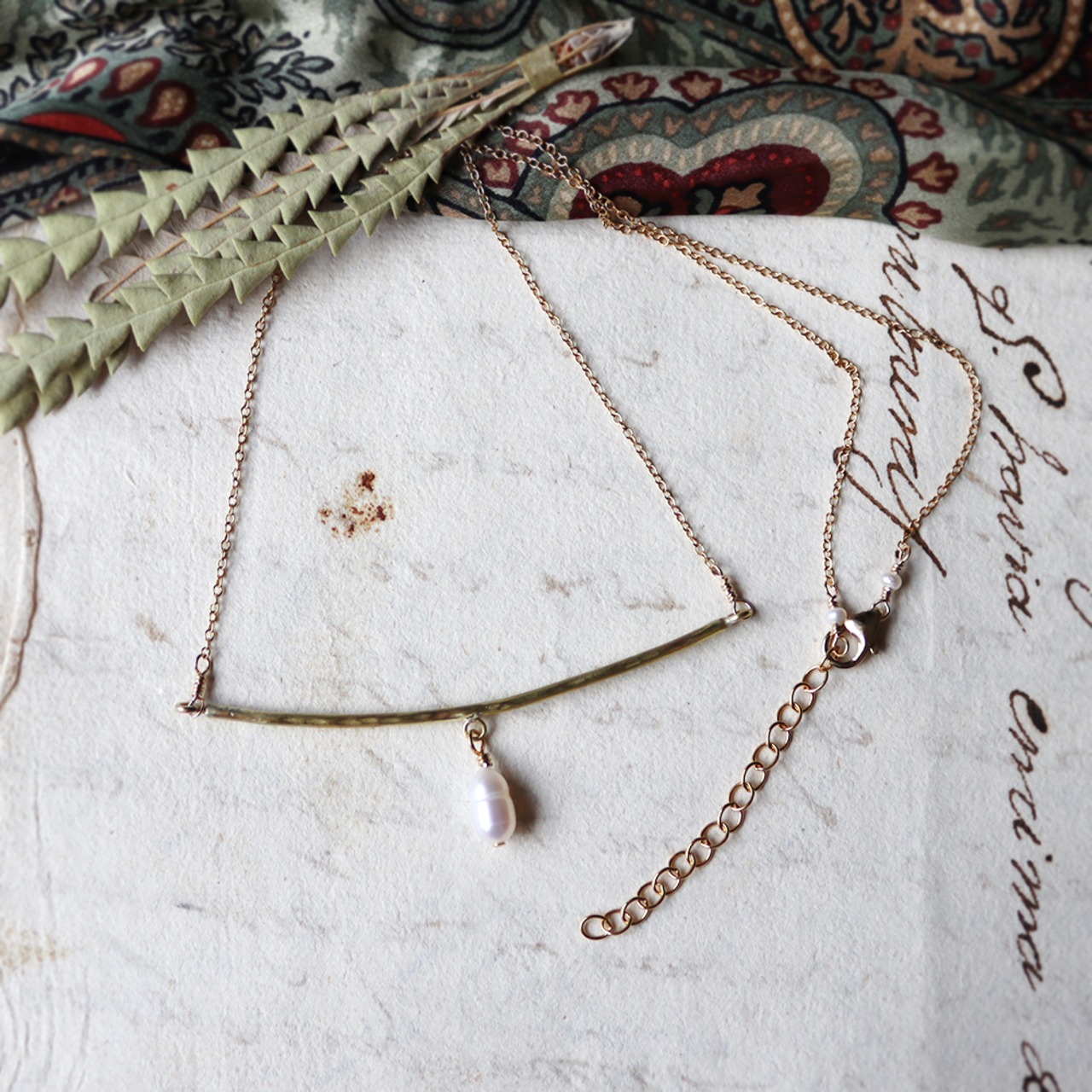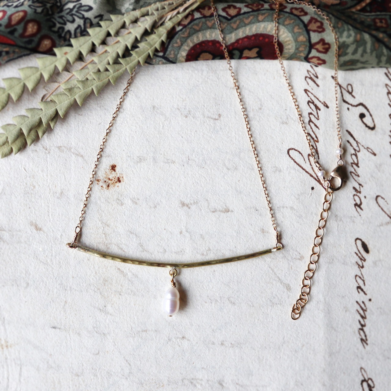 パールの真鍮バーネックレス