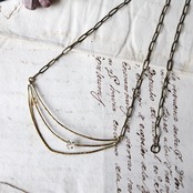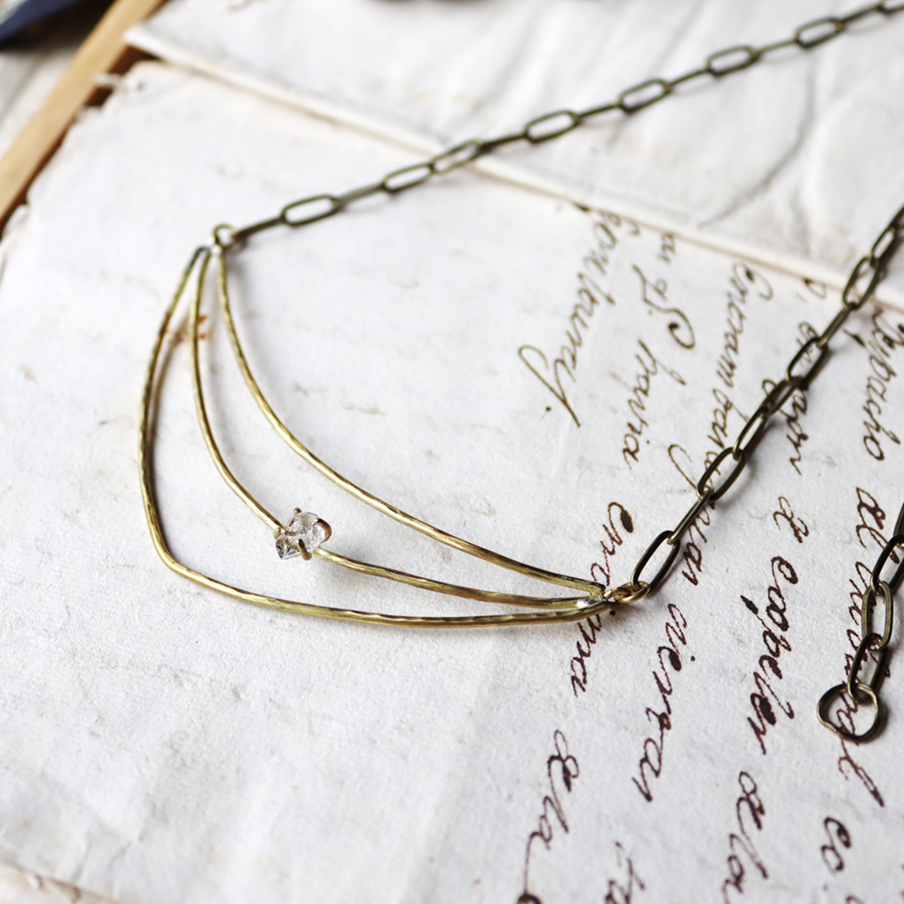 大振りで軽い真鍮のトップに、原石ダイヤモンドクォーツが雫のように輝くネックレス。