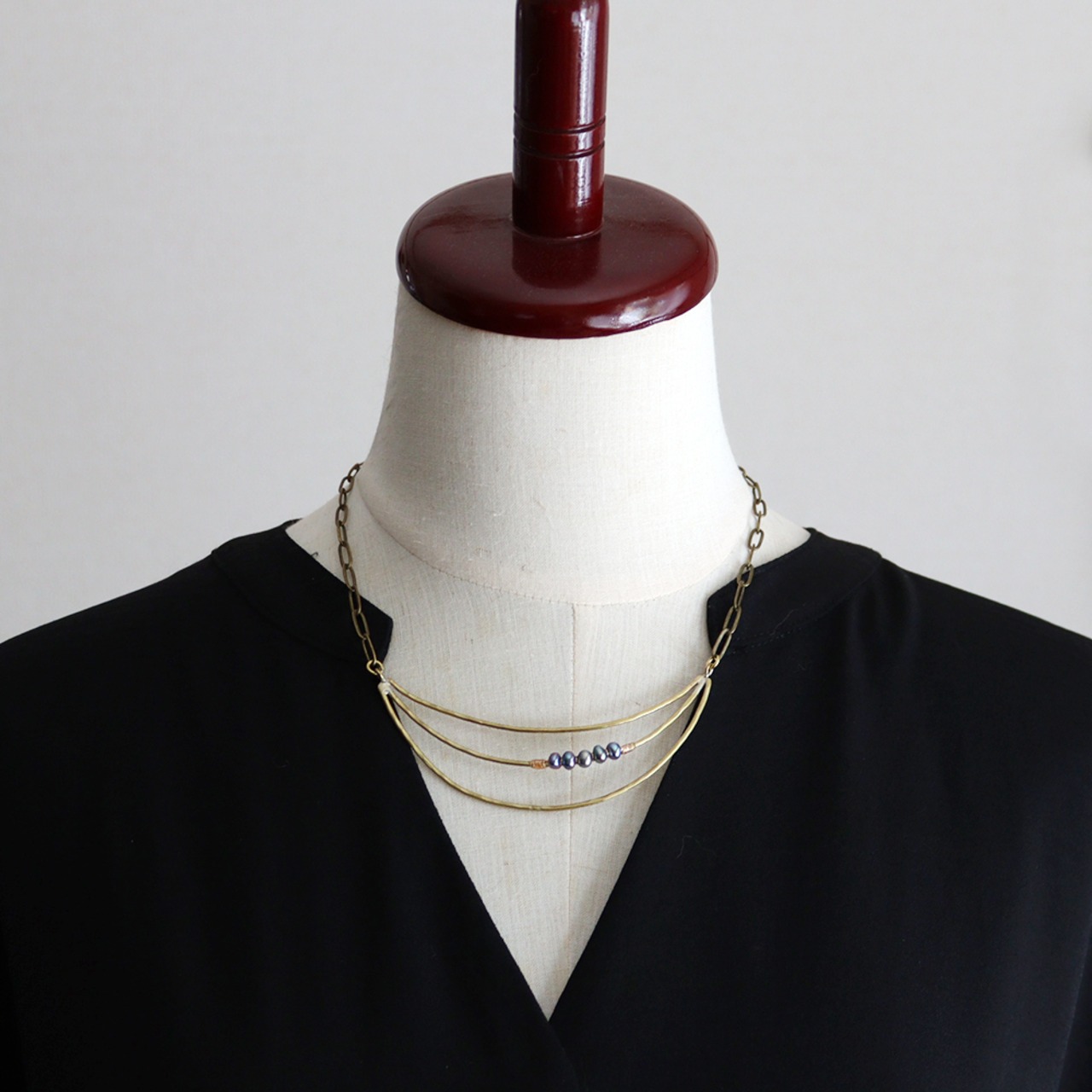 グレーパールの真鍮3連ネックレス
