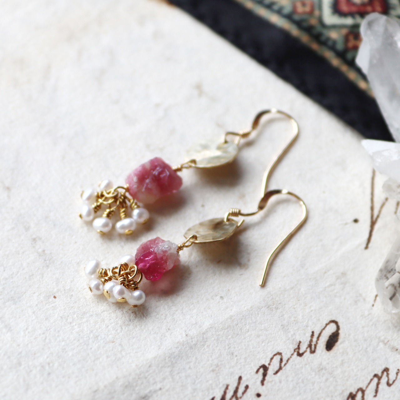 素材:真鍮・ピンクトルマリン・パール・K14ゴールドフィルド