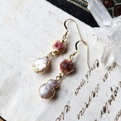 アゲートとパールのピアス w1286
