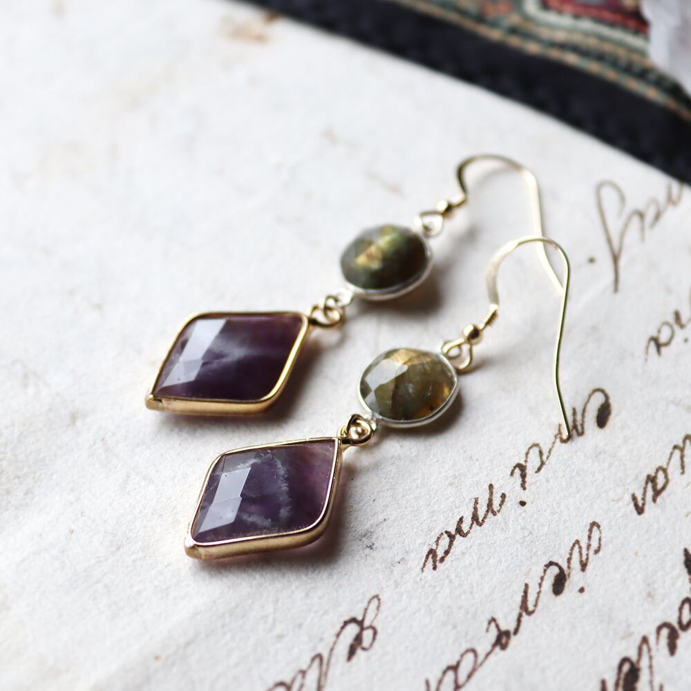 ラブラドライトとアメジストのピアス