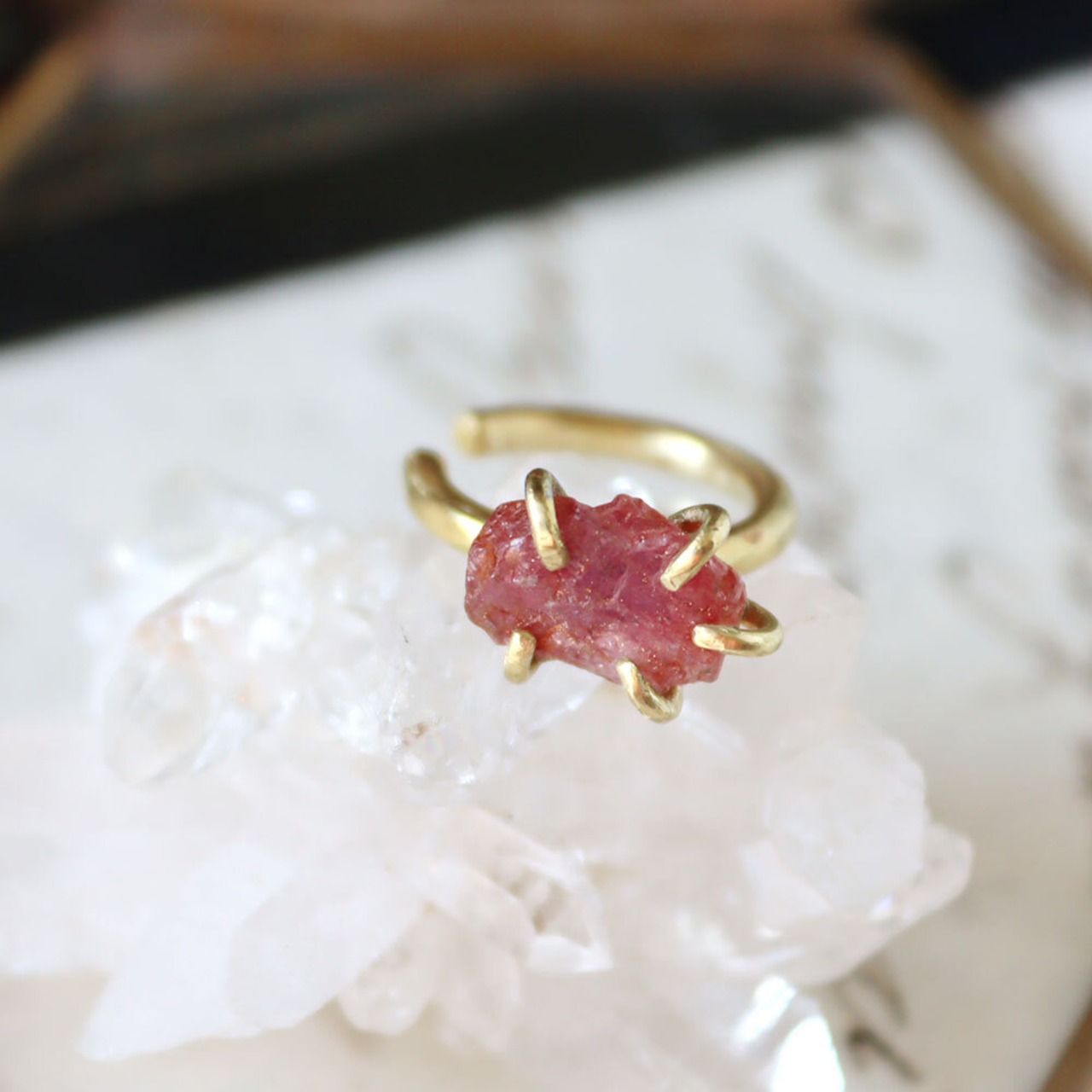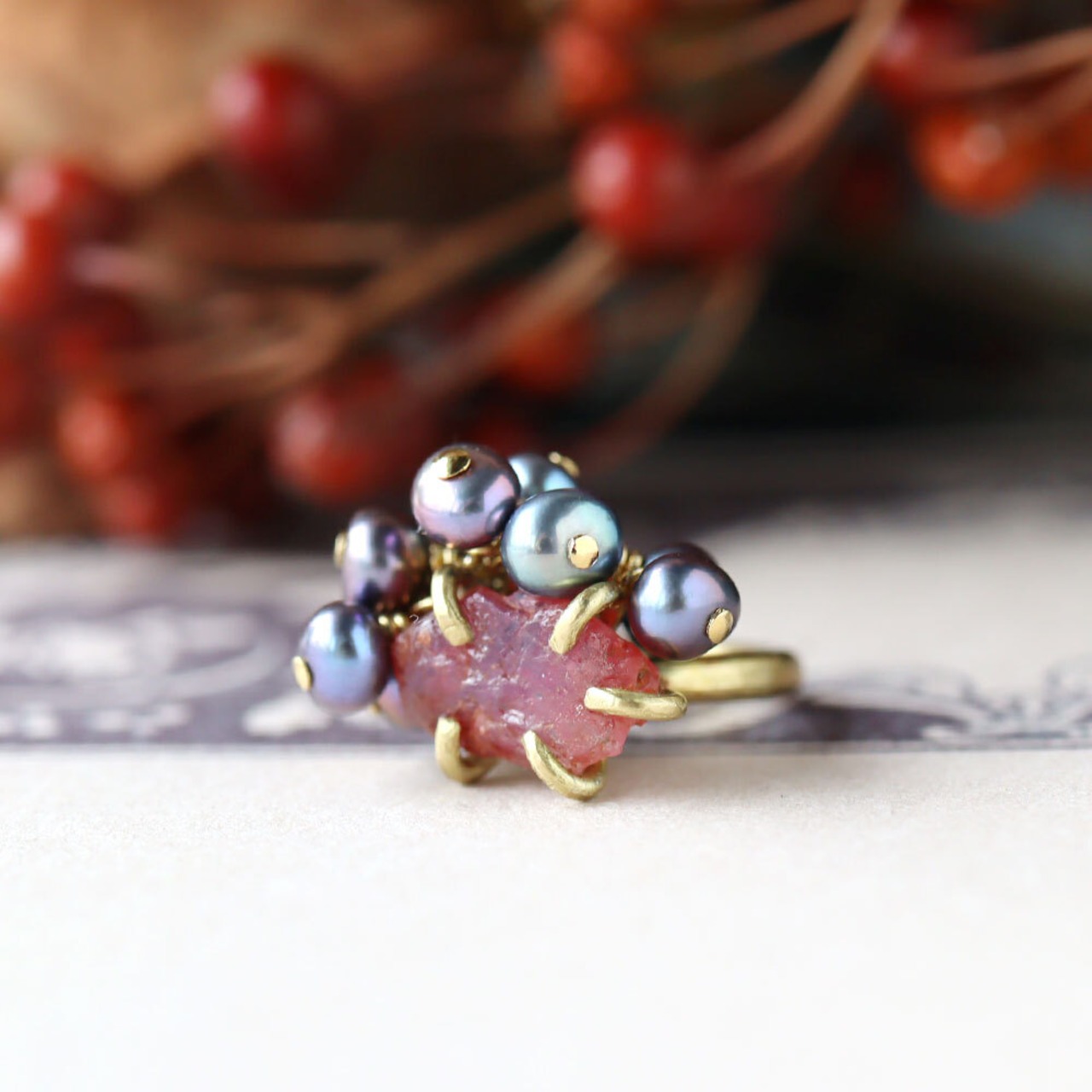 ベリーのような鮮やかなピンク色、原石らしい無骨な表情のルビー。