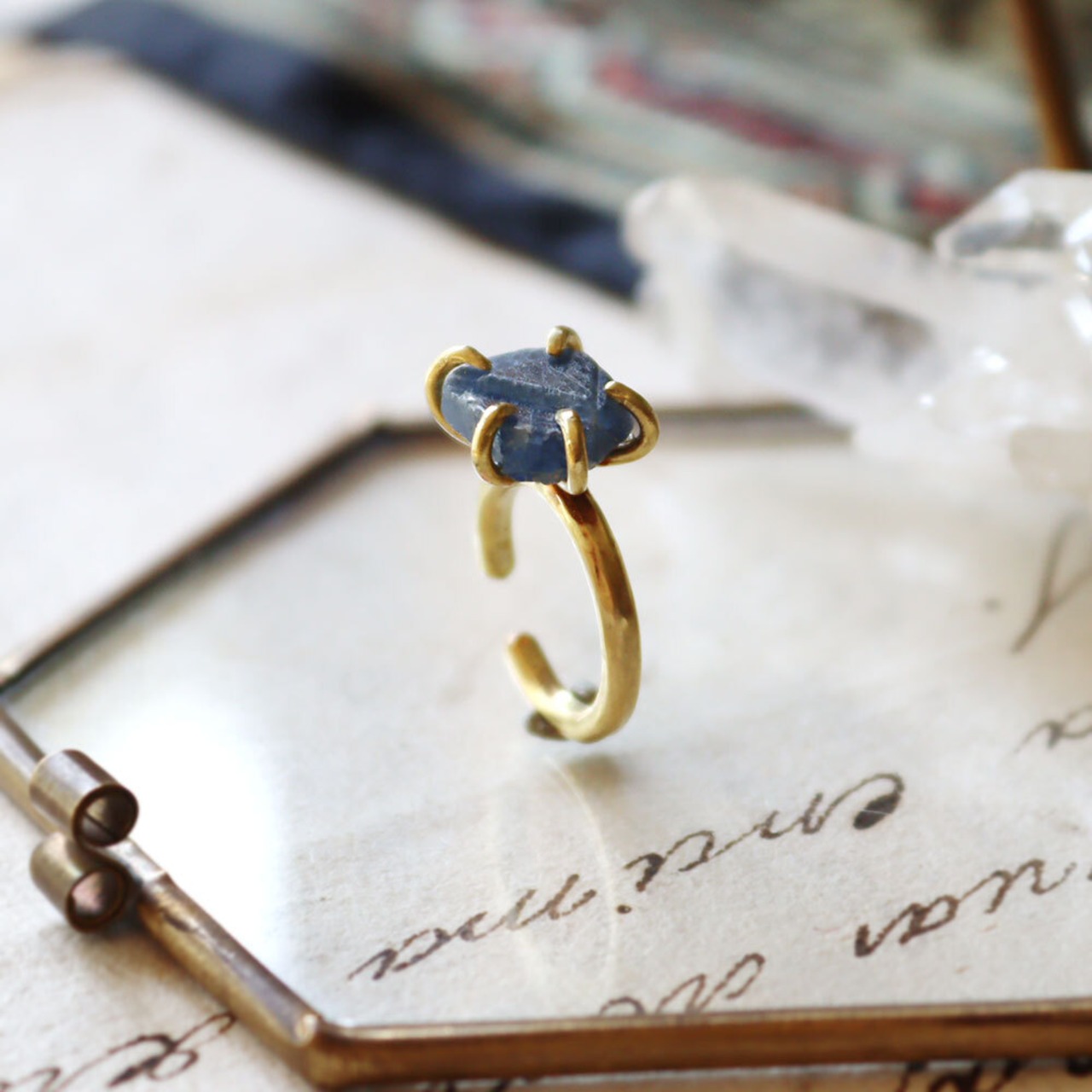 真鍮の5本爪でシンプルに留め、ベビーリングのようなイヤーカフにしました。