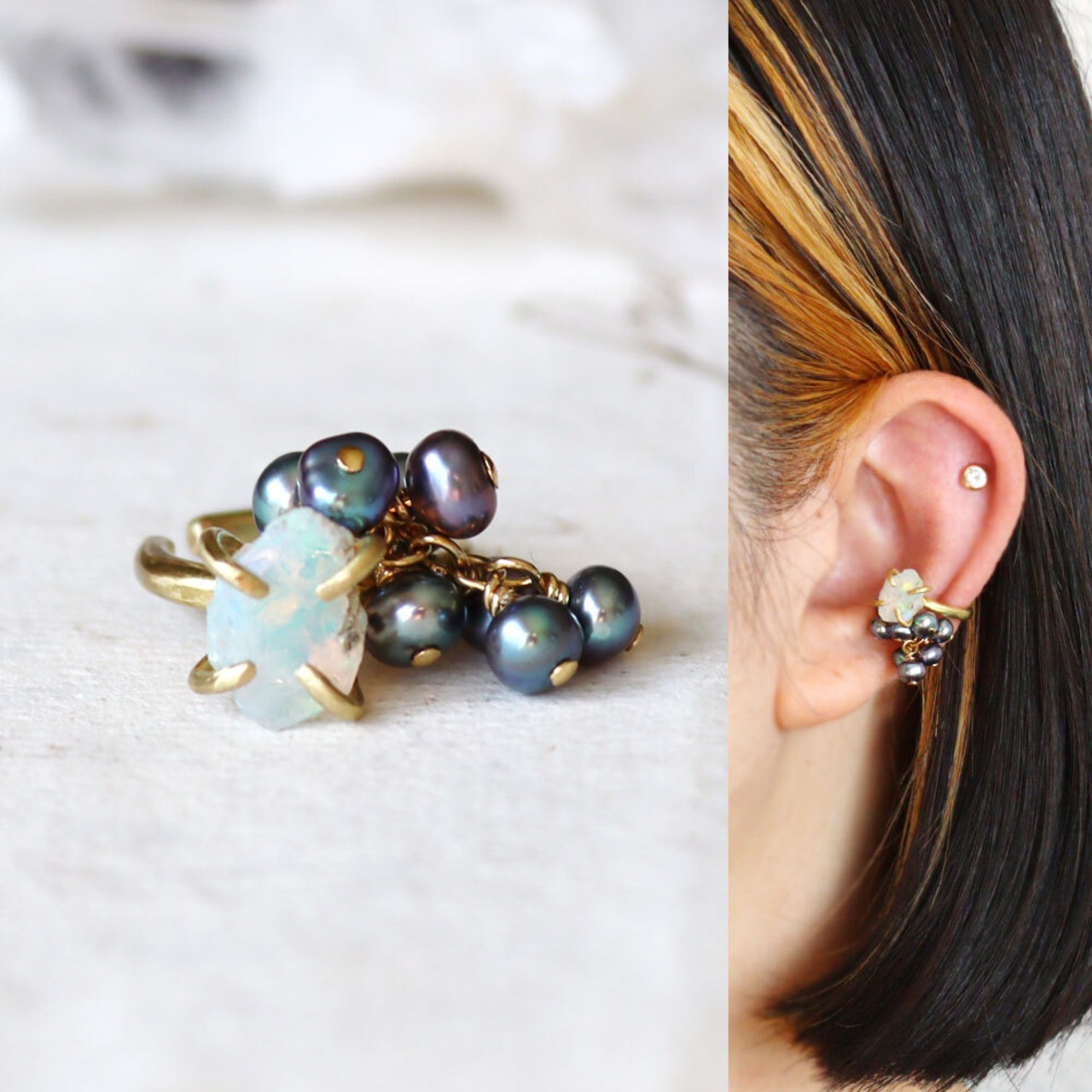 イヤーカフに合わせたパールのパーツは、オプションでホワイトとグレーの2種類をご用意しました。