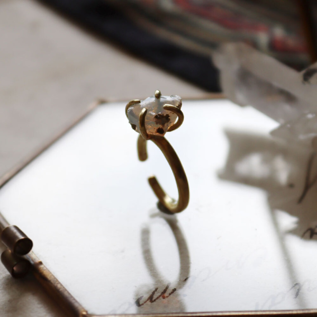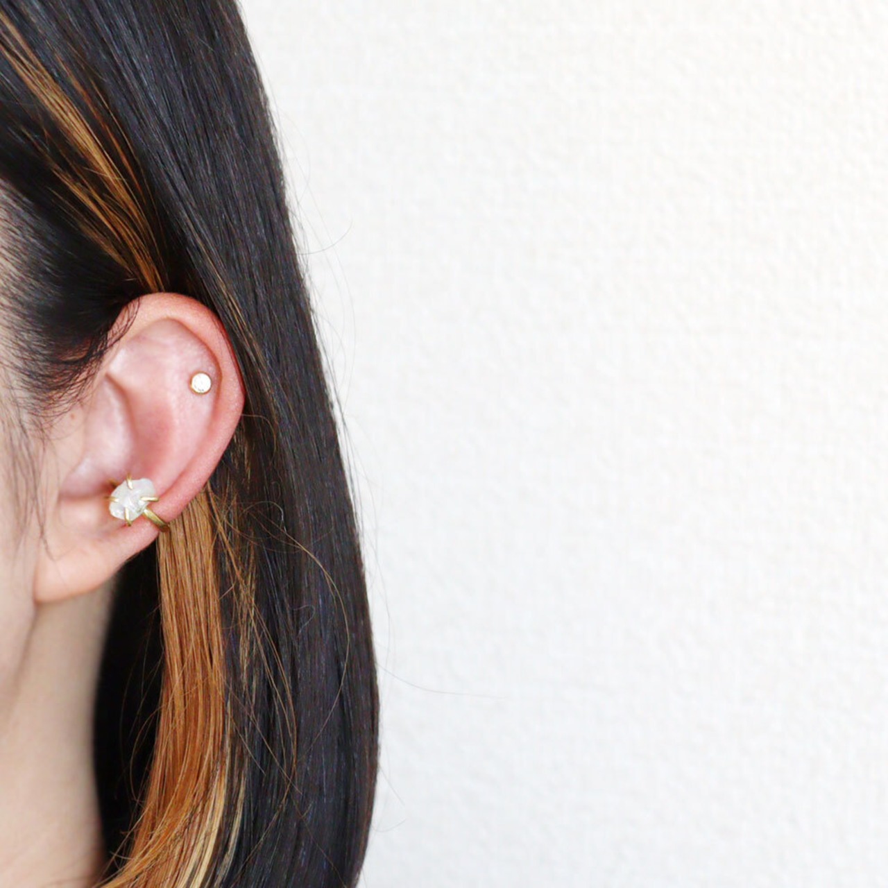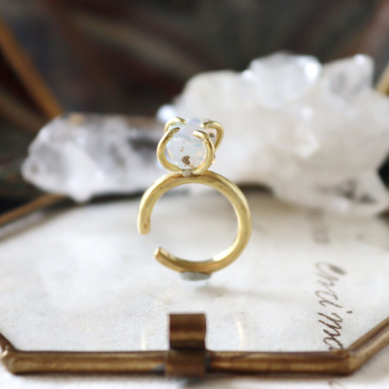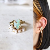 真鍮の4本爪でシンプルに留め、ベビーリングのようなイヤーカフにしました。