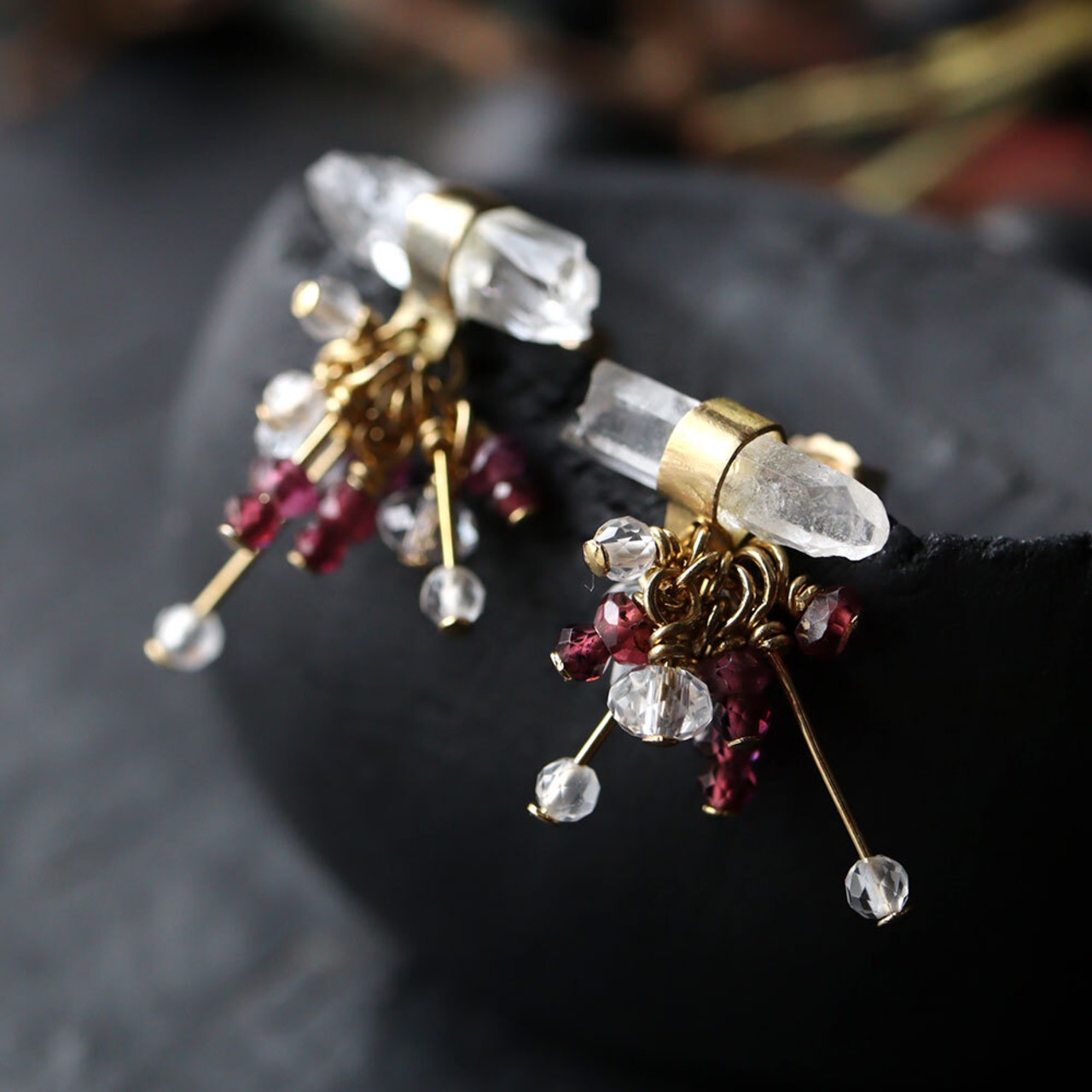 素材:クォーツ(マダガスカル)・ロードライトガーネット・真鍮・K14ゴールドフィルド