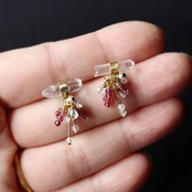 氷の柱のようなクォーツ。霜が降りた南天の実から、雪の結晶が育っていくようなピアス。