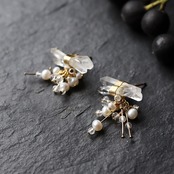 クォーツとパール/氷と雪の結晶ピアス w1313