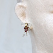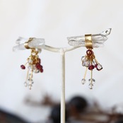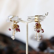 クォーツとガーネット/氷と雪の結晶ピアス w1315