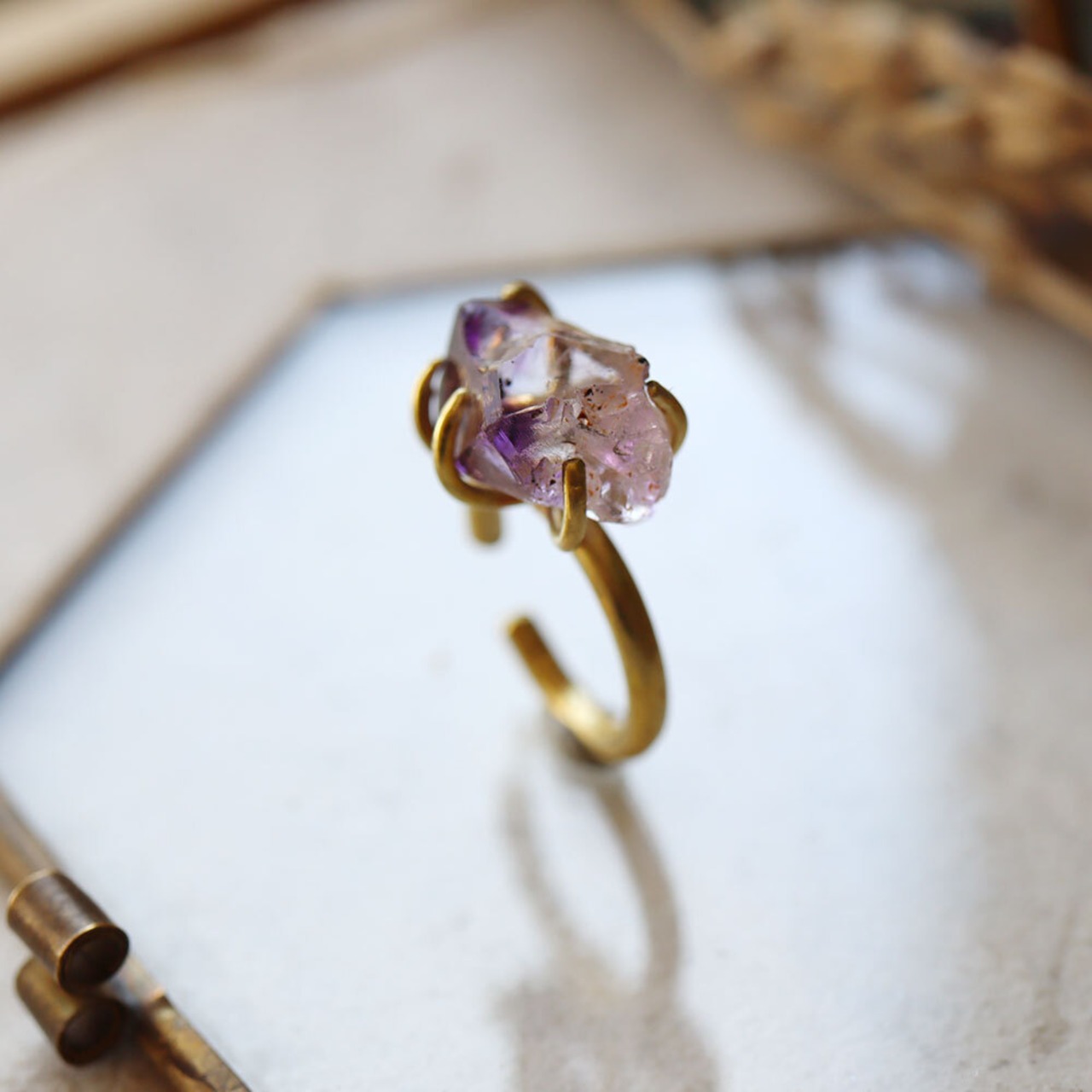 真鍮の爪でシンプルに留め、ベビーリングのようなイヤーカフにしました。