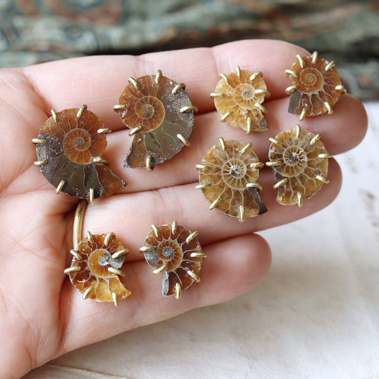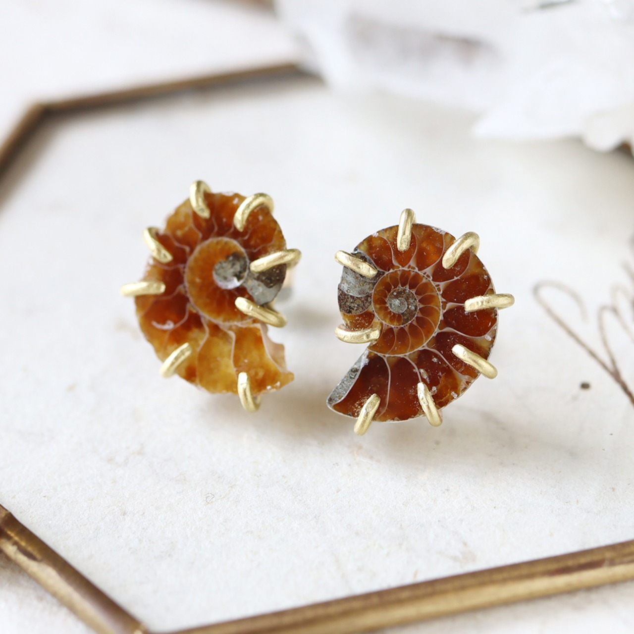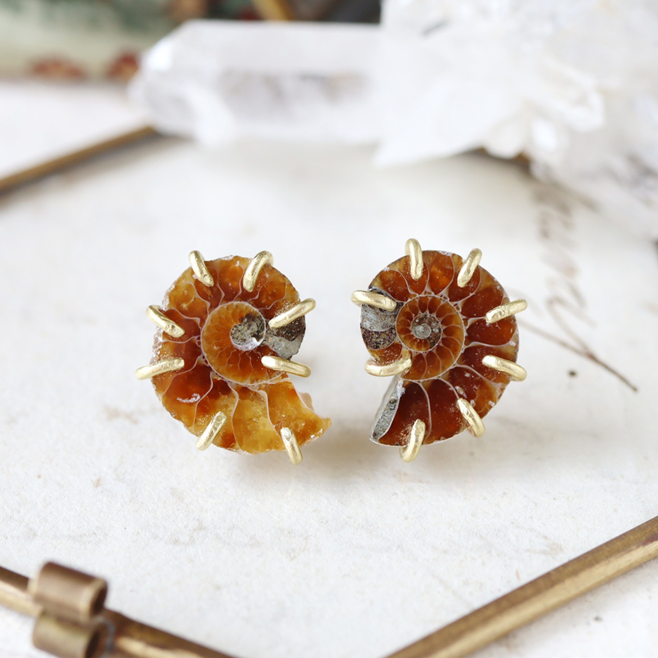 素材:アンモナイト(中生代白亜紀)・真鍮・K14ゴールドフィルド(ピアス金具)