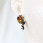 化石を半分にスライスした状態を、真鍮の爪で有機的に留めてピアスにしました。