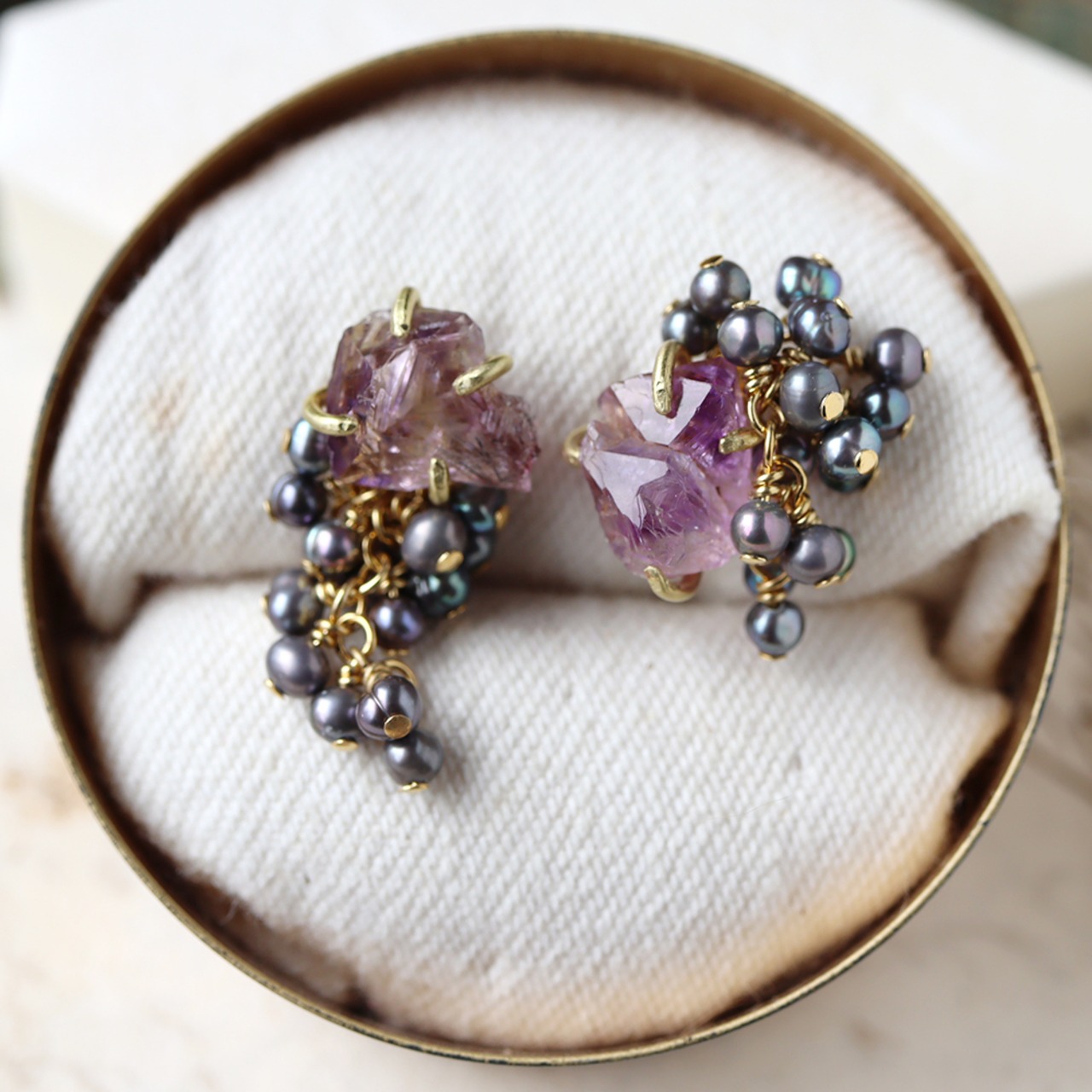 素材:アメジスト・真鍮・K14ゴールドフィルド(ピアス針・キャッチ)