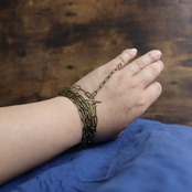 色味の濃い金色と、あたたかい質感が魅力的な素材です。はじめはゴールドのように明るい金色で光沢がありますが、使い込むうちにアンティークのような風合いに変化していきます。