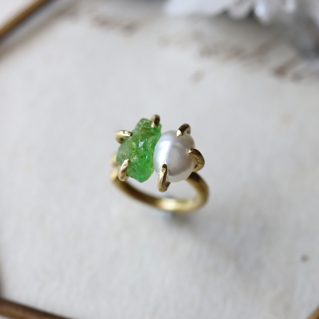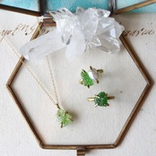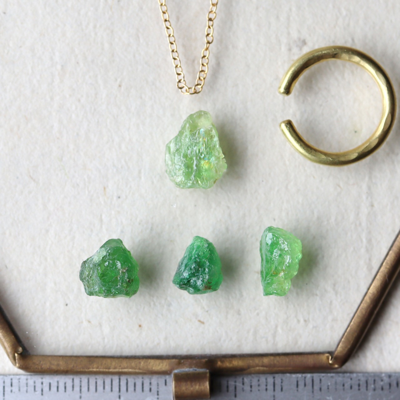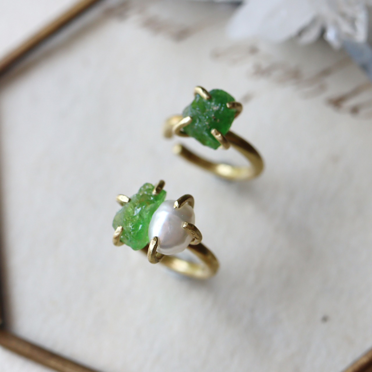 H様オーダー 原石グリーンガーネットとパールのイヤーカフ