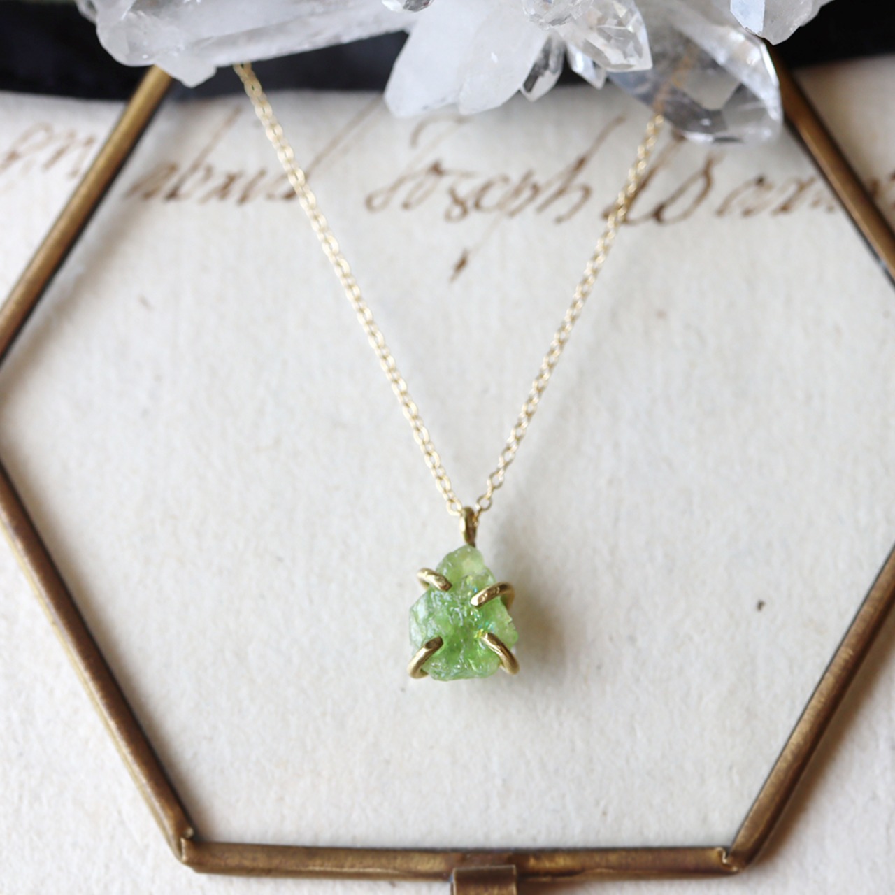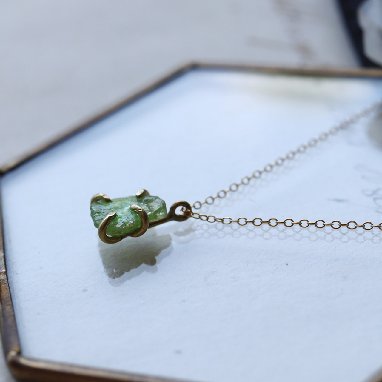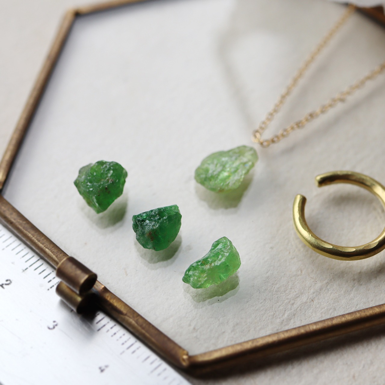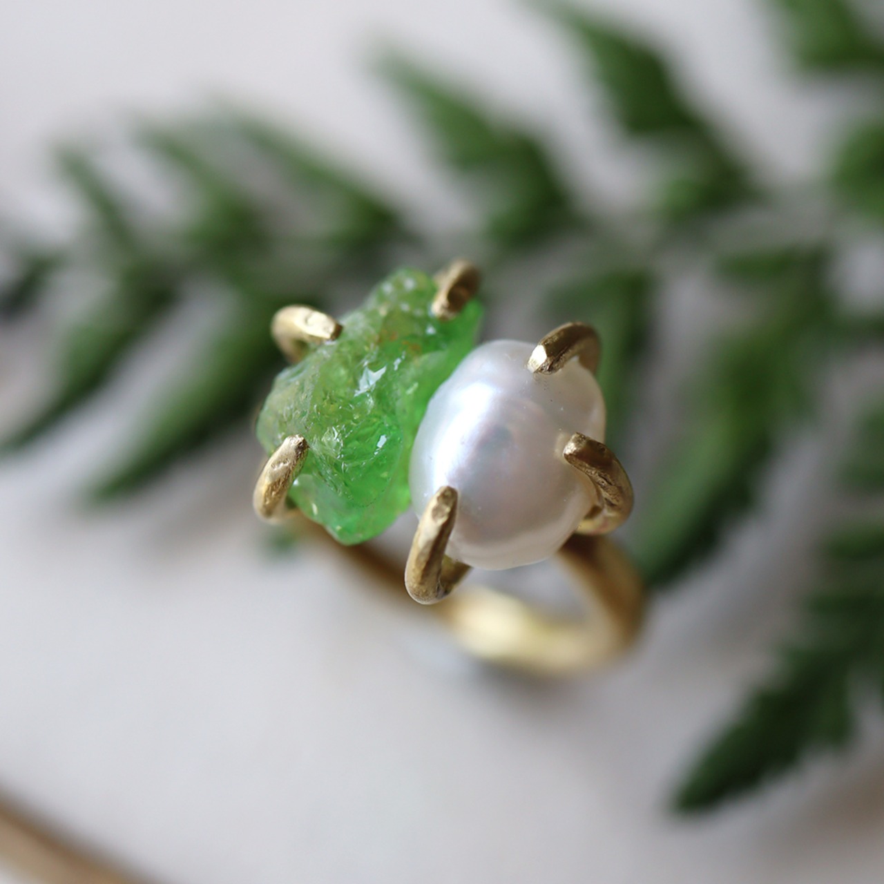 H様オーダー 原石グリーンガーネットとパールのイヤーカフ