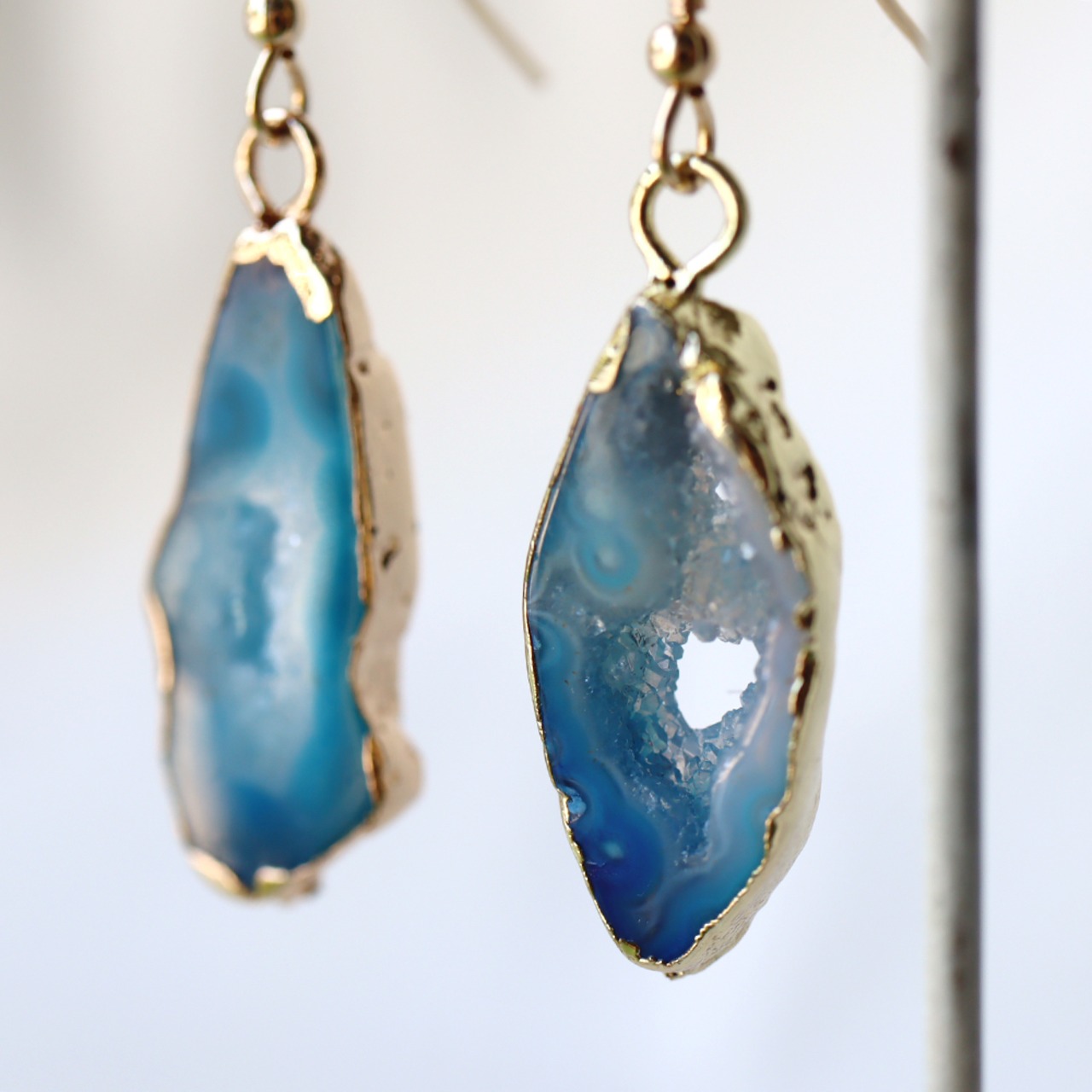 細かな結晶が集まって砂糖菓子のようにきらきらと光るドゥルージーと、アゲートらしい鮮やかなブルーの縞模様が楽しめる天然石。