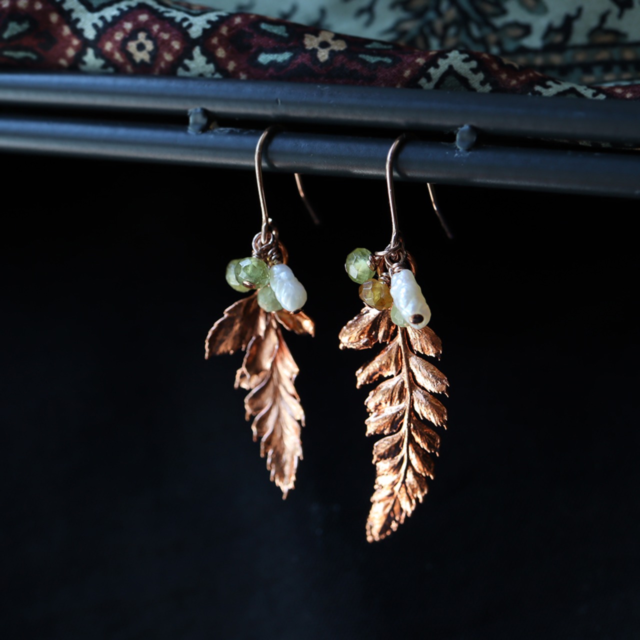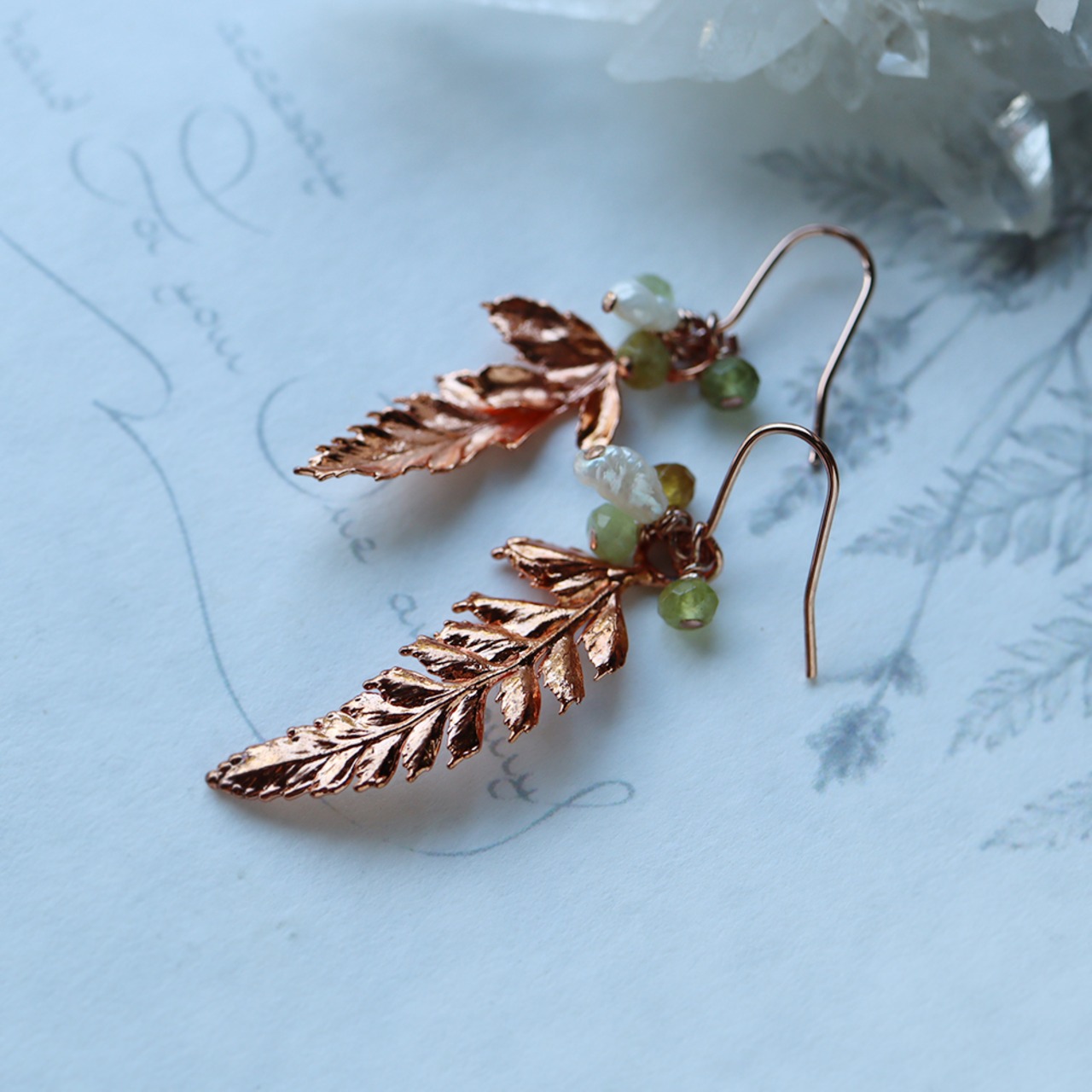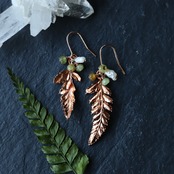 ヒメワラビの葉っぱとグリーンガーネットのピアス