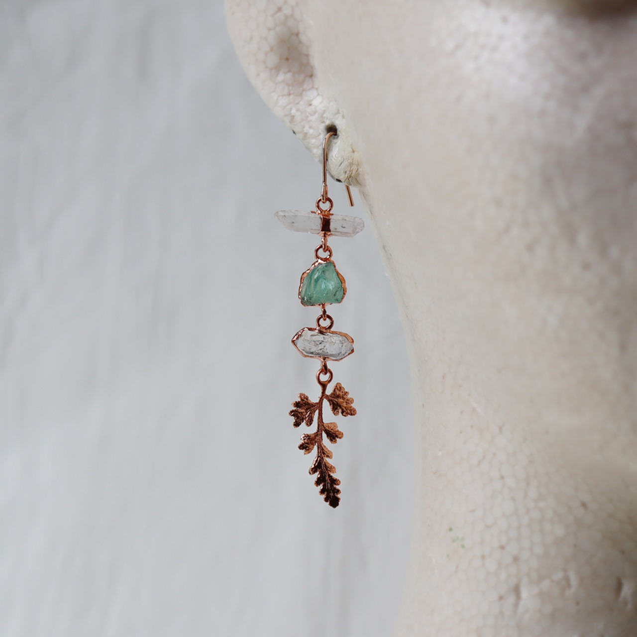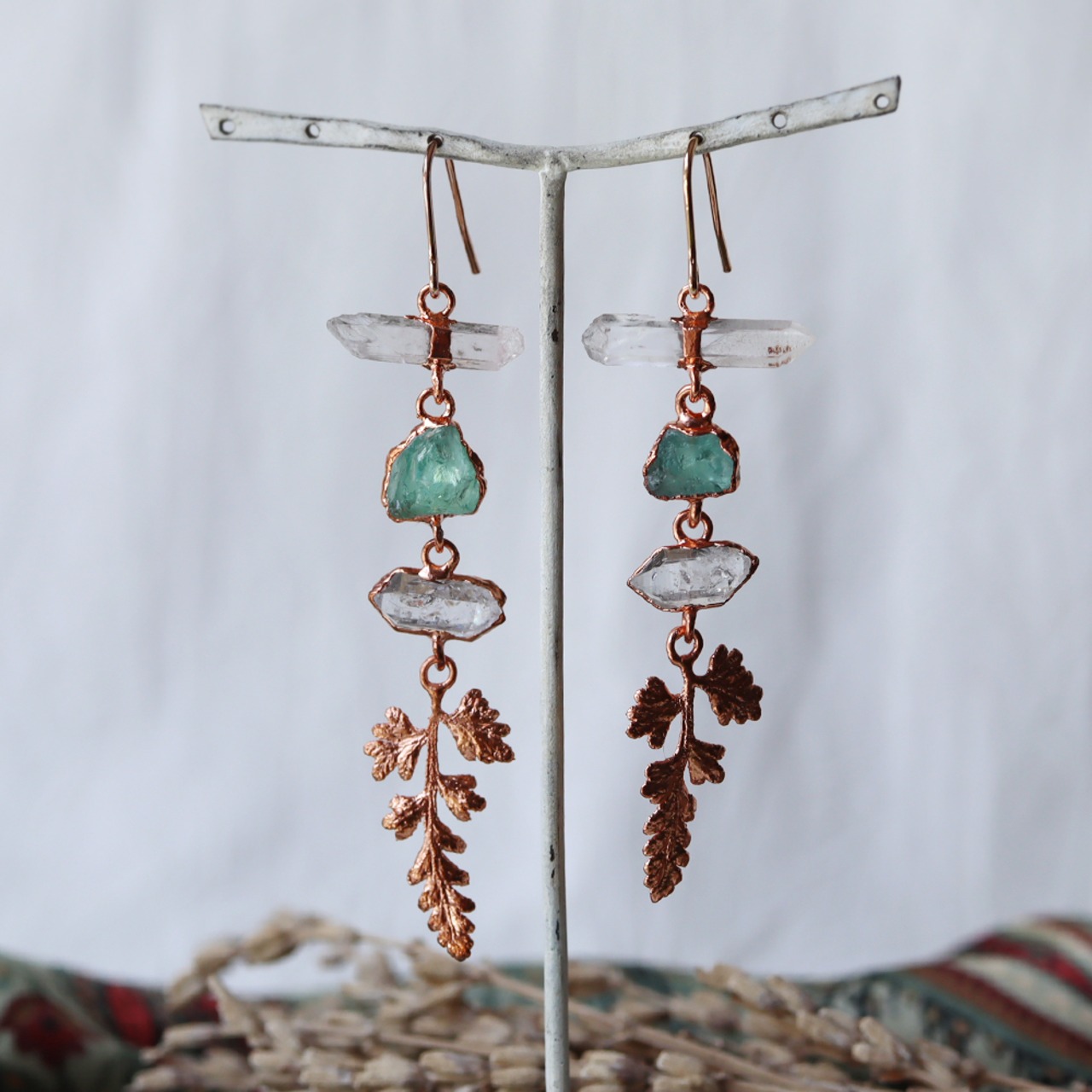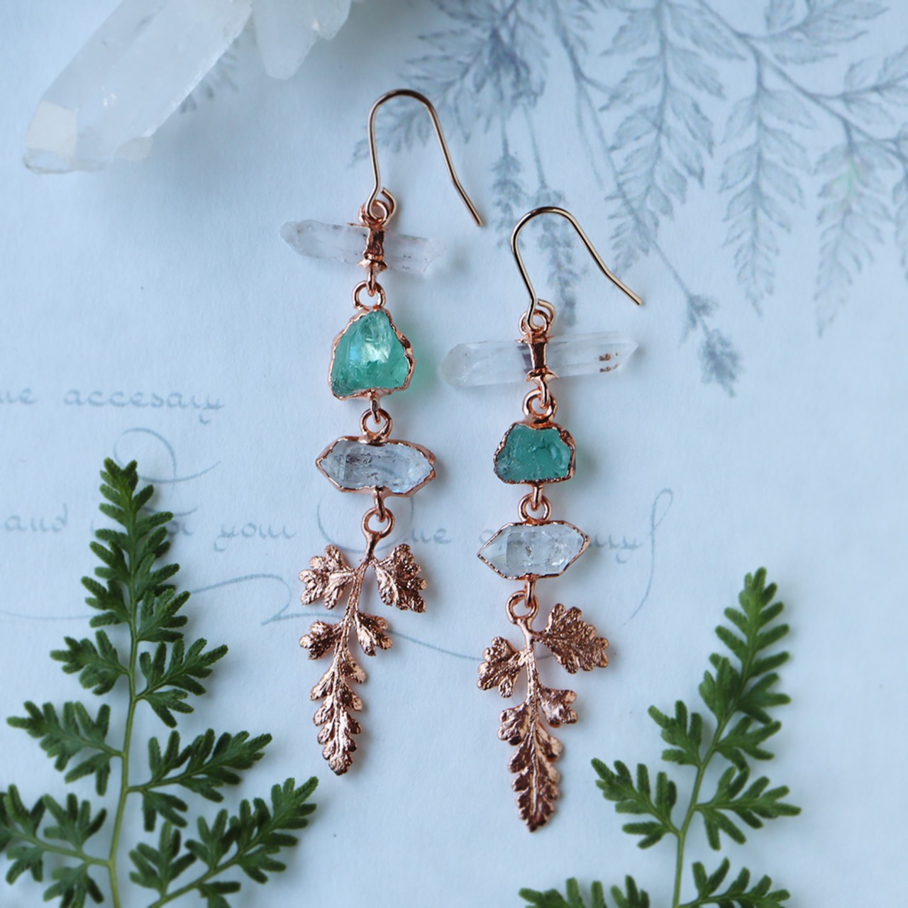 素材:クォーツ・アパタイト・ダイヤモンドクォーツ・銅(トップ・ピアス金具)