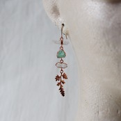 個性豊かな天然石と葉っぱが連なって独特のバランスで揺れるピアス。