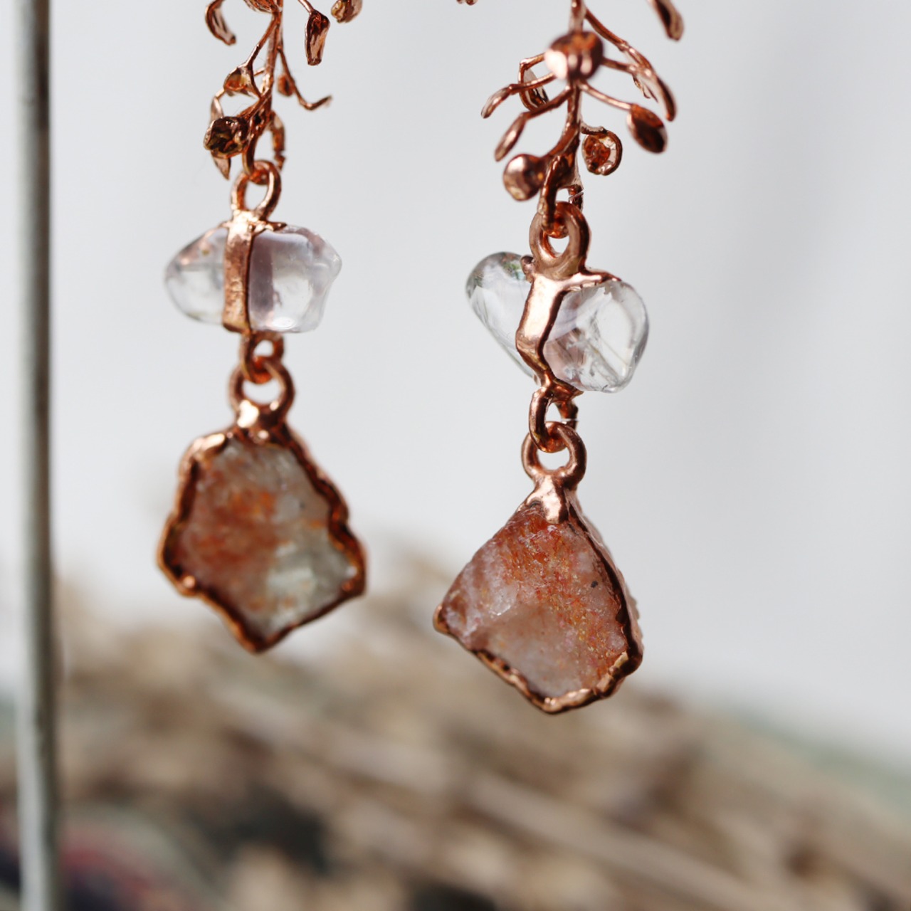 素材:クォーツ・サンストーン・銅(トップ・ピアス金具)