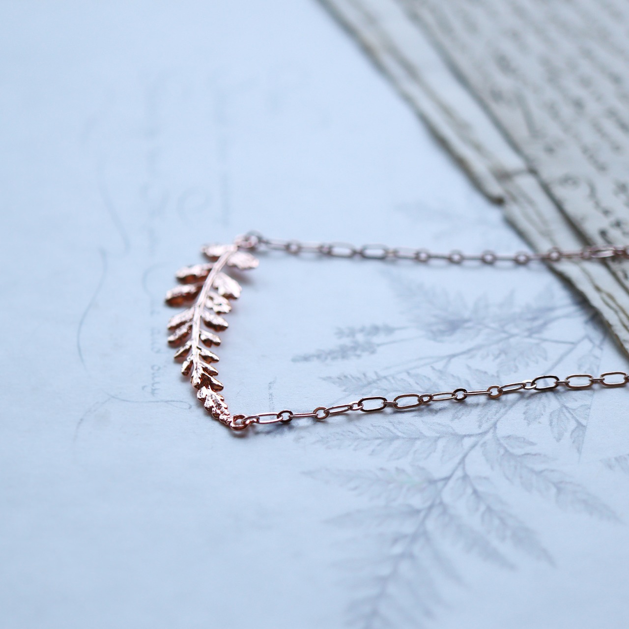 細かな葉っぱが規則正しく並ぶ、繊細で美しいタマシダ。うねりのある自然な形をそのままに、首元に沿うシンプルなネックレスにしました。