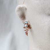 2way:原石オパールとパールの葉っぱピアス