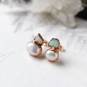 素材:オパール(エチオピア産)・パール・銅・K14ゴールドフィルド(ピアス針・キャッチ)