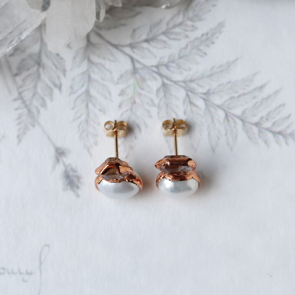 素材:ダイヤモンドクォーツ(パキスタン産)・パール・銅・K14ゴールドフィルド(ピアス針・キャッチ)