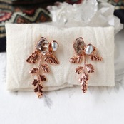 2way:原石ダイヤモンドクォーツとパールの葉っぱピアス
