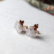 鉛筆型に育つ結晶が集まりきらきらと輝くクォーツクラスター。結晶は両端が尖った六角柱で透明度が高く、その輝きからグリッタークォーツとも呼ばれます。微細な結晶がもこもこと集まった、金平糖のような不思議な形。原石そのままの形を活かした個性的なピアスです。