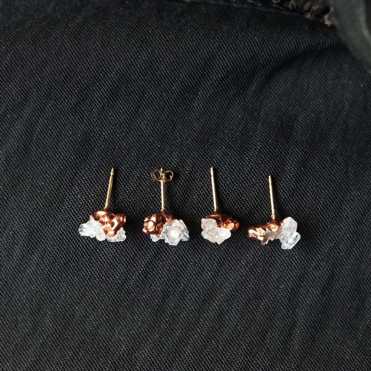 素材:クォーツクラスター(モロッコ産)・銅・K14ゴールドフィルド(ピアス針・キャッチ)