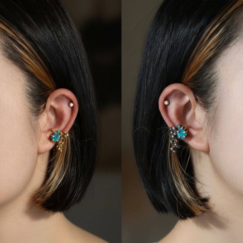 イヤーカフに合わせたパールのパーツは、オプションでホワイト・ゴールド・グレーの3種類をご用意しました。