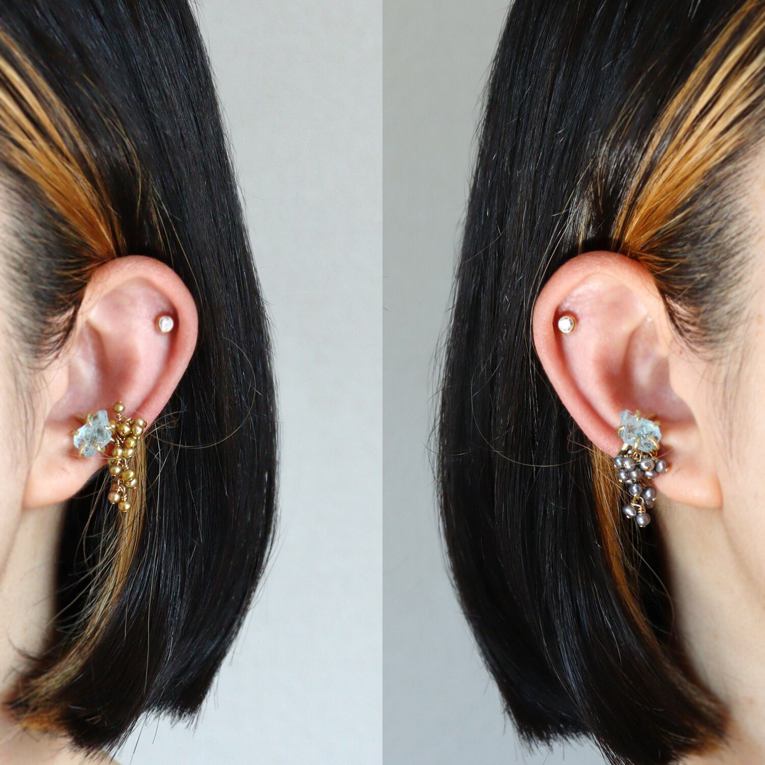 イヤーカフに合わせたパールのパーツは、オプションでホワイト・ゴールド・グレーの3種類をご用意しました。
