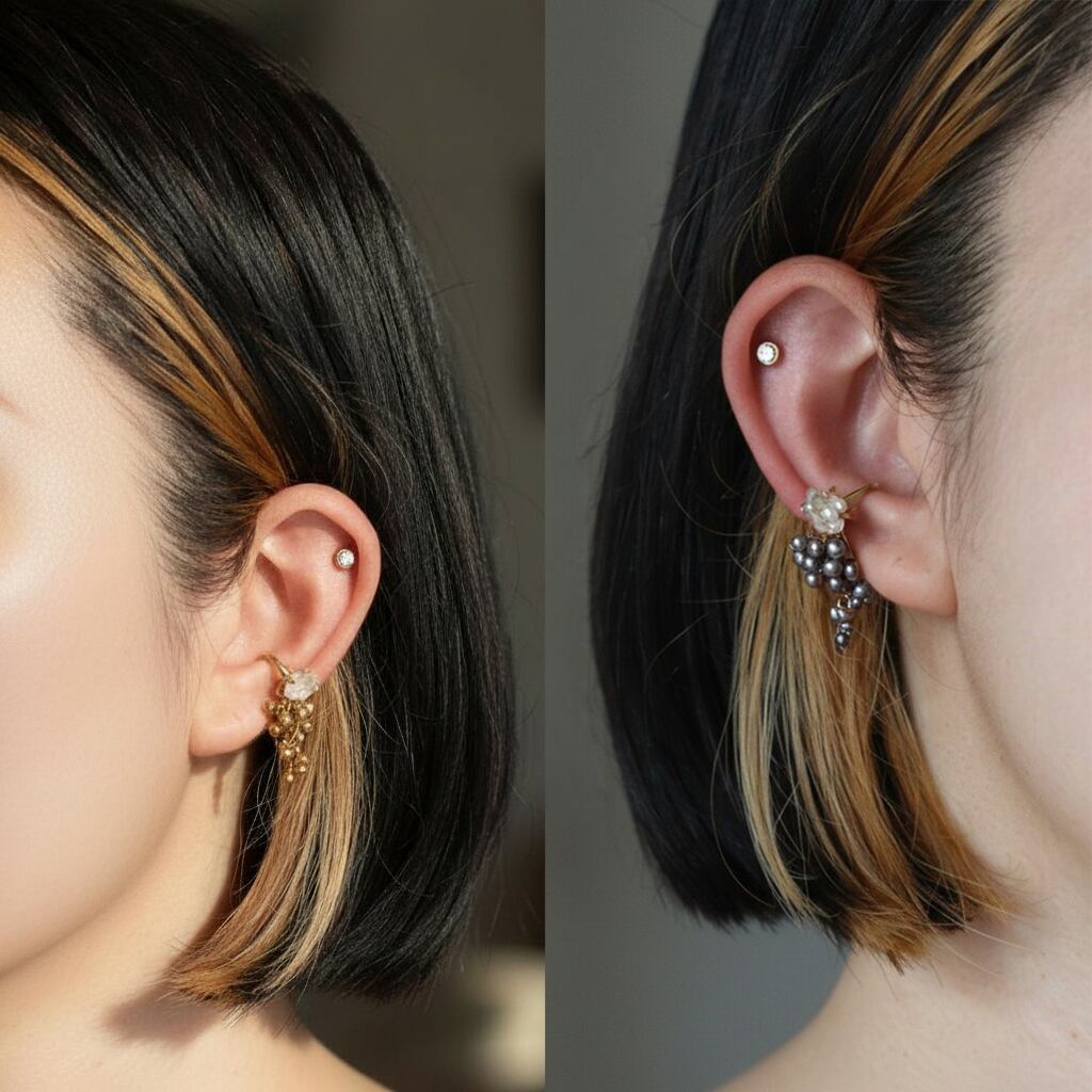 原石ダイヤモンドクォーツのイヤーカフ w1421
