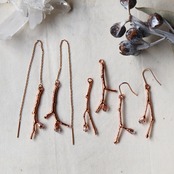 本物の樹の枝の分岐や樹皮の表情もそのままに、エレクトロフォーミングという錬金術のような技法で金属コーティングしたものです。素材である銅は赤みのある金色があたたかく、使い込む程にアンティークな質感へと変化していきます。
