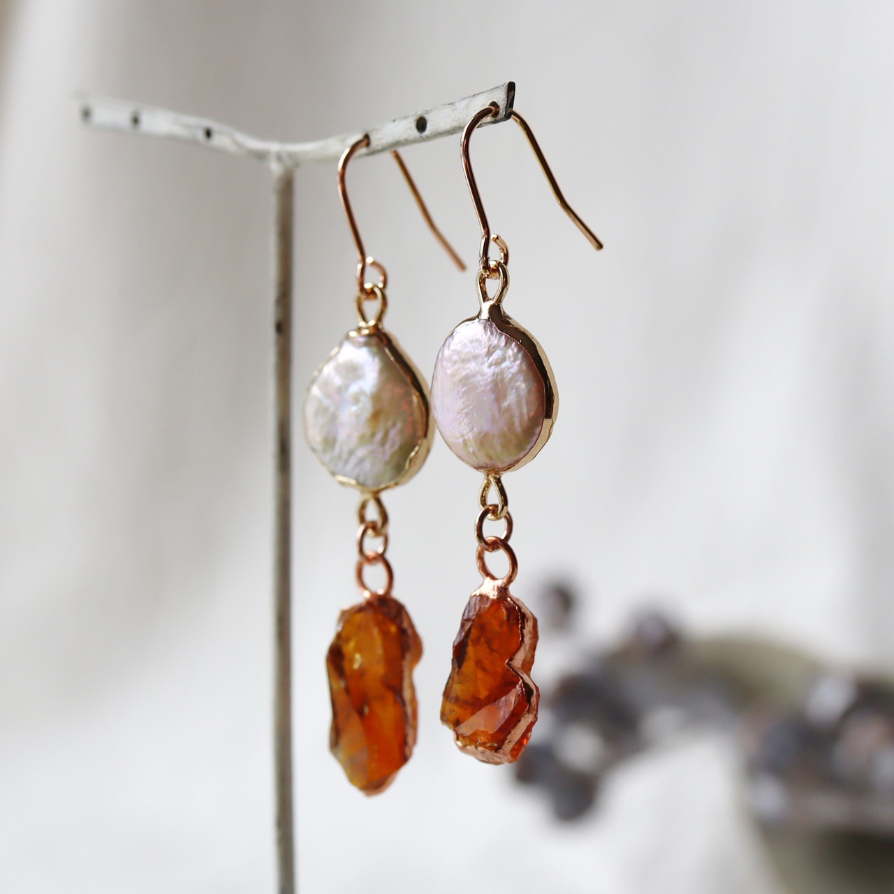 素材:パール(石枠ゴールドプレート)・シトリン・銅(石枠・ピアス金具)