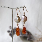 パールと原石シトリンのピアス