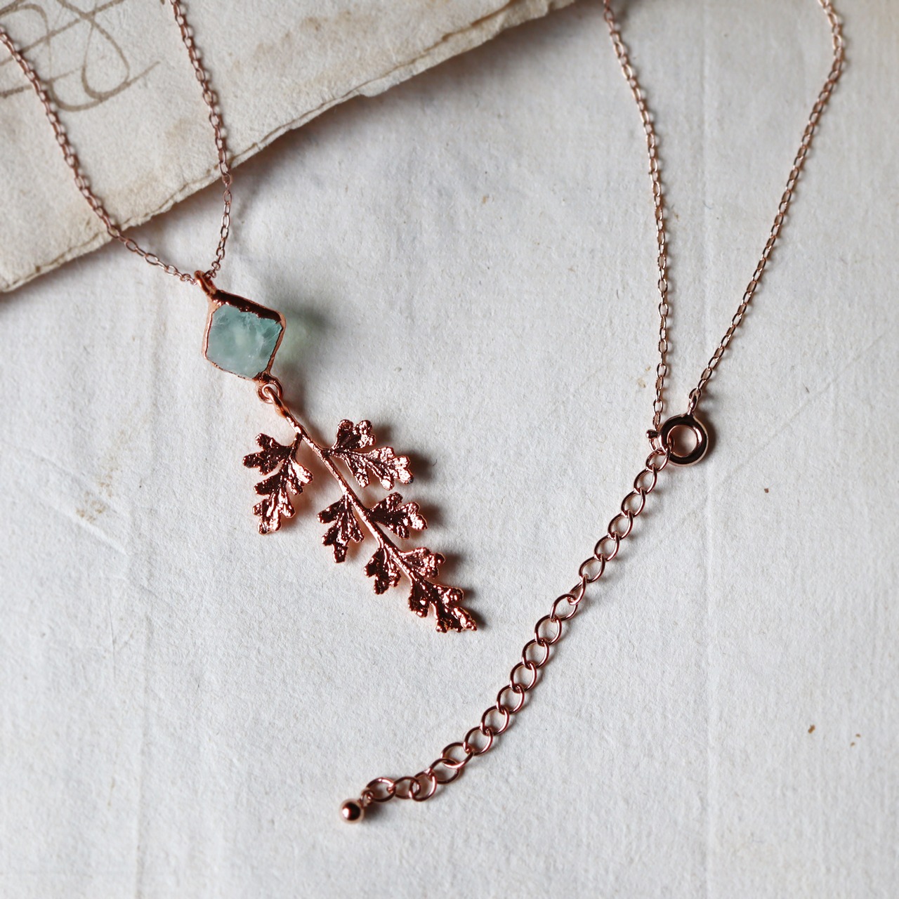 原石フローライトと葉っぱのネックレス