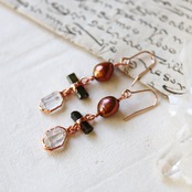 パール・原石トルマリン・ダイヤモンドクォーツのピアス